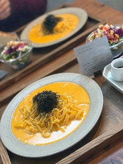 ずっと行きたかったお店におねえちゃんとランチ☺️ ウニクリームおいしかった💓 今日も出勤です🥂